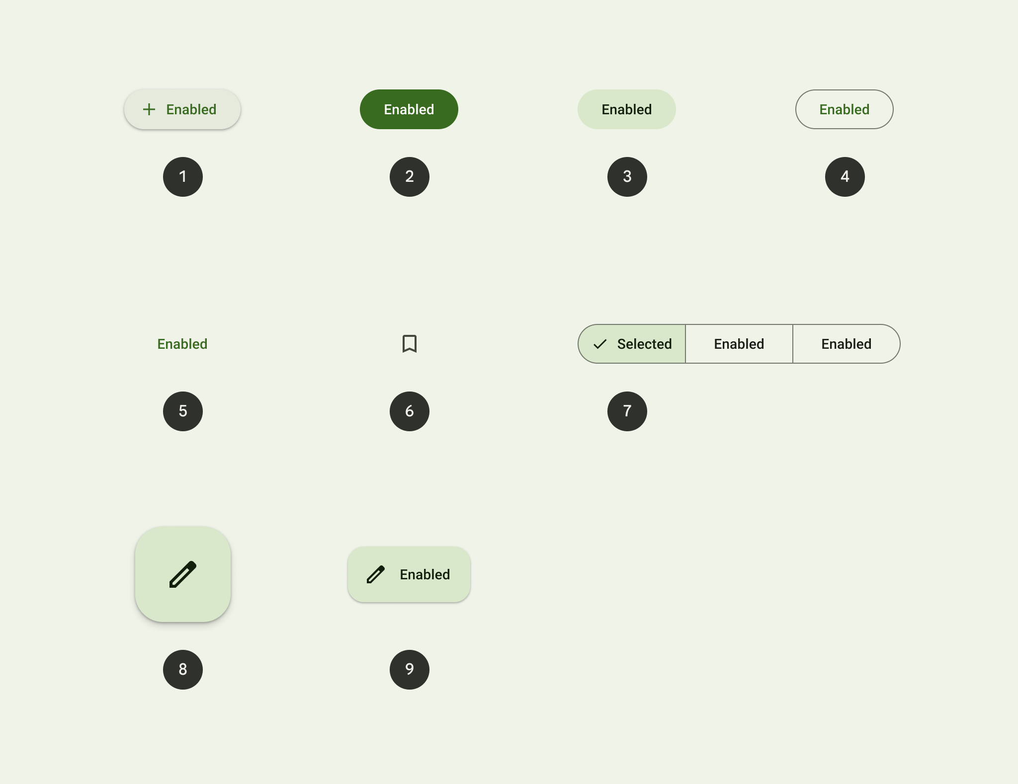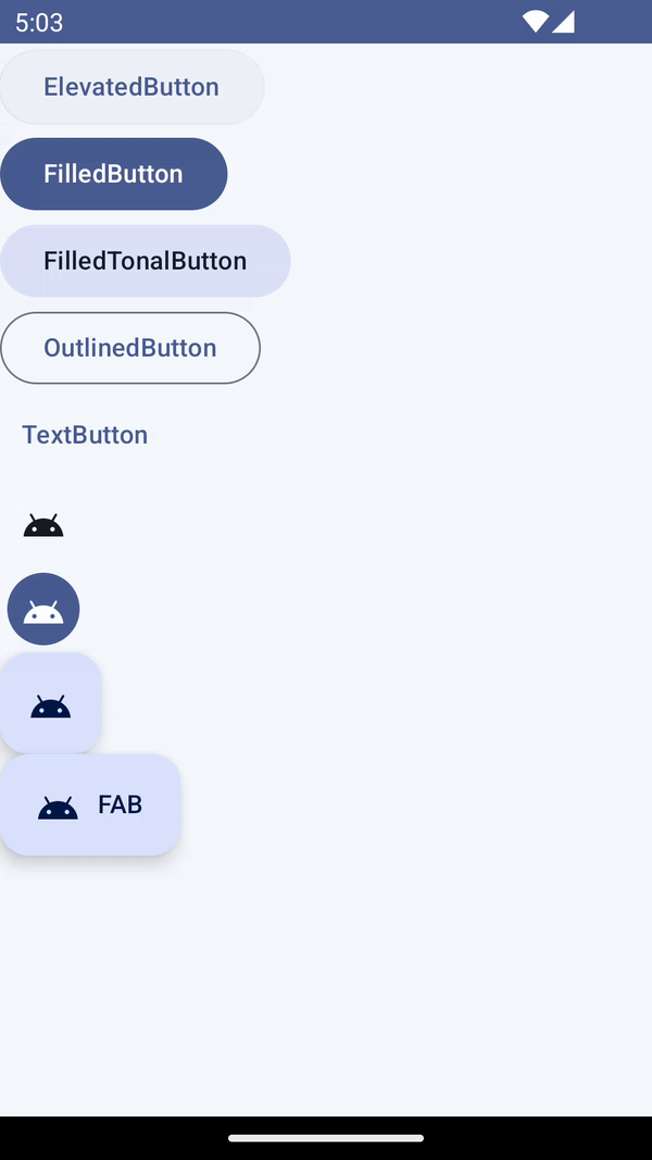 이전엔 버튼의 매개변수별 특징을 알아봤다면 이번엔 Material3에서 제시하는 버튼의 종류에 대해 알아보겠습니다.